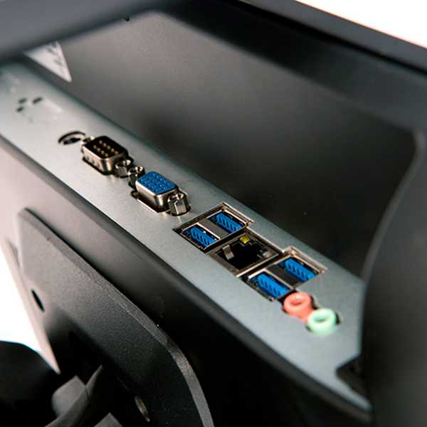 Порты: 6 × USB, 2 x COM (RJ-48), 1 × VGA, 1 * Line-Out, 1 * Mic-in